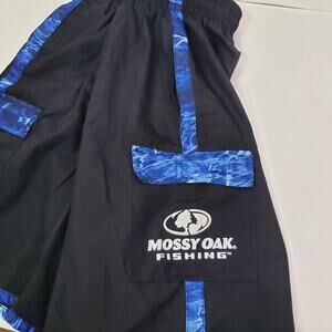 Mossy Oak Men’s L Fishing Elements Swim Cargo Shorts Black /Blue Camo Trim