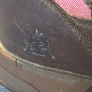 Stylish boots with pink and brown camo pattern. Perfect for outdoor adventures.