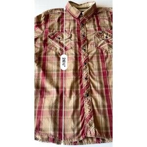 Mossy Oak Shirt Men's Size Large Red Brown Plaid Western Pearl Snaps Cowboy Hunt