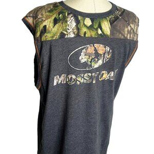 Mossy Oak Tank Top Mens Size L (42/44) Grey Camo Spell Out Logo