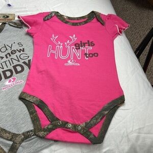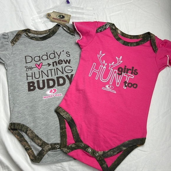 2 baby girls Mossy Oak onesies. New without tags. Size 12 months.