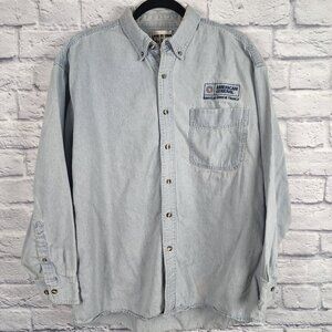 Most Wanted Men's Size Large American General Finance Denim Button Down Shirt Vintage