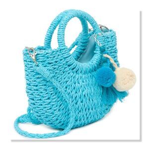Most Wanted USA Top Handle Straw Crossbody Bag in Blue - NEW
