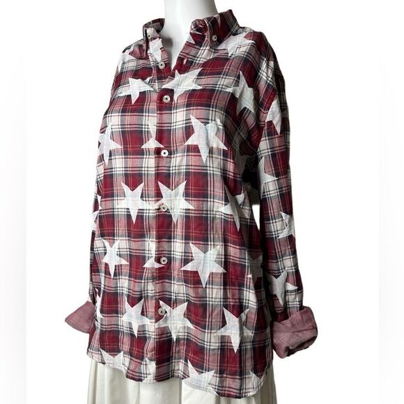 Mostly Heard Rarely Seen Star Plaid Button Down Shirt Red & White Size Large