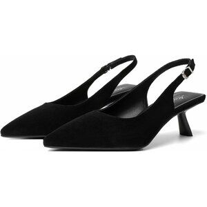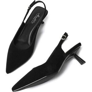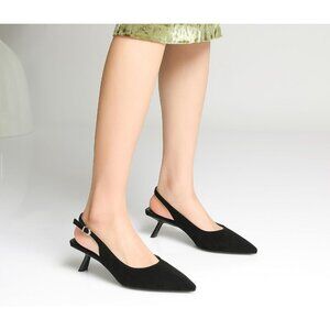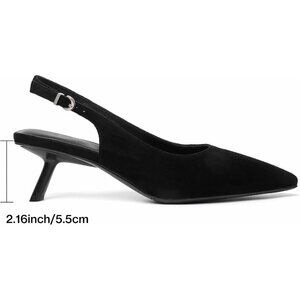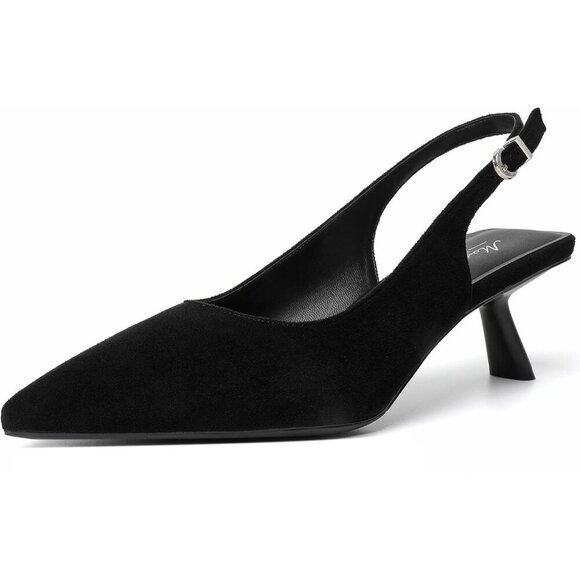Mostrin Kitten Heel Black Suede Low Slingback Heels with Buckle Dress Shoes