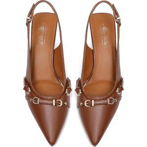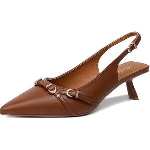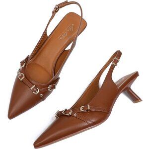 Mostrin Kitten Heel Brown(03) Faux Leather Low Slingback Heel with Buckle