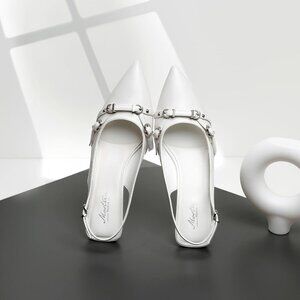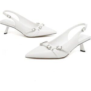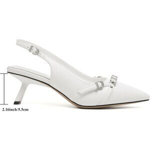 Mostrin Kitten Heel White Pu(03) Faux Leather Low Slingback Heels with Buckle
