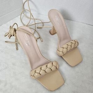 Mostrin Tan Heels Curve Nude Open Toe Quilted Pyramid Heels Size 40