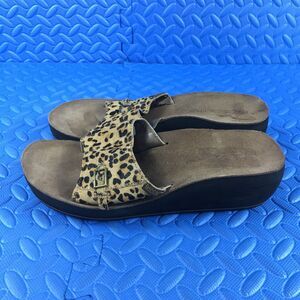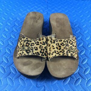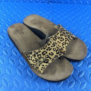 Moszkito Sandals Womens Shoes Size 10 Tan Leopard Print Platform Wedge Slip On