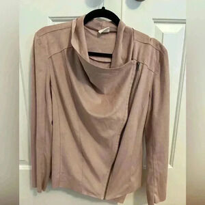 Mote Blush Pink Faux Suede Asymmetric Full-zip Raw Cut Lightweight Moto Jacket M