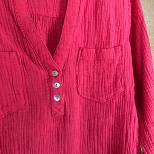 Long Sleeve VNeck. Silver toned buttons on the front and sleeves are intact. Lightweight and breathable.