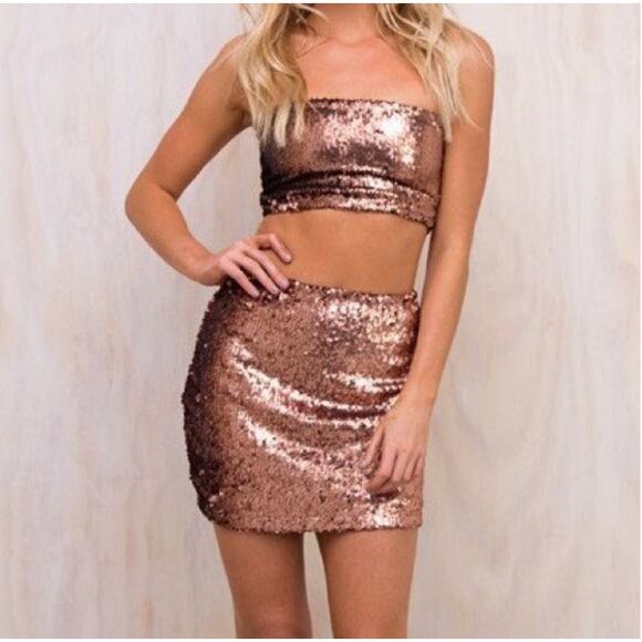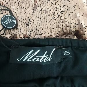 Motel Cherry Tube sequin skirt. Slightly stretchy. NWT. Size XS. Waist is 11 inches. Length is 14 inches. Color is copper.