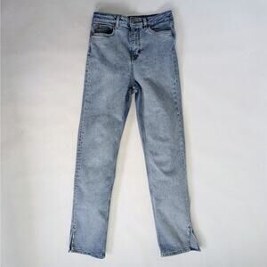 Motel Denim Jeans M Blue Split Hem Straight Leg Medium Wash Stretch Zipper Fly