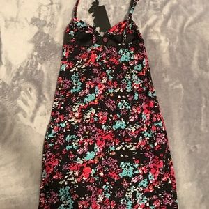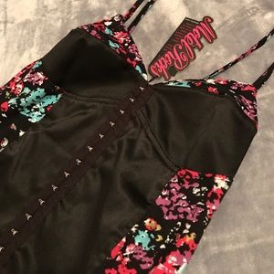 Cute mix of color with sexy black detail in the front. Mid thigh length, stretchy material. Size M . Brand is Motel.
