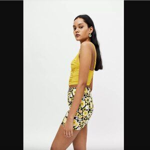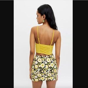 Motel Ima Yellow Black Retro Floral Print Mini Skirt S