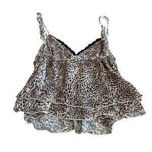 Motel Leopard Print Crop Top Blouse Shirt Spaghetti Strap Ruffle Size XXS Womens