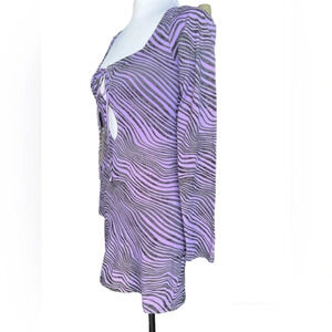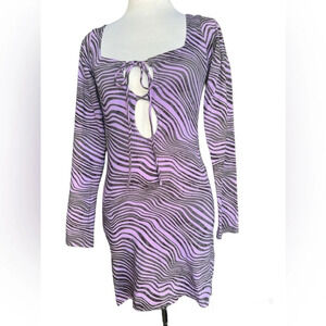 Motel Long-Sleeve Mini Dress - Purple Wavy Stripe Pattern, Size Small (NWT)