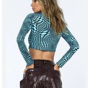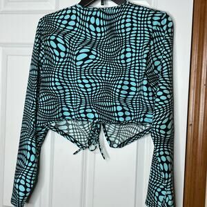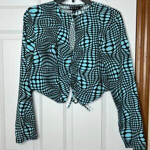 Motel Natta Crop Top Optic Polka Dot Blue Green and Black Cutout Plus Size XXL