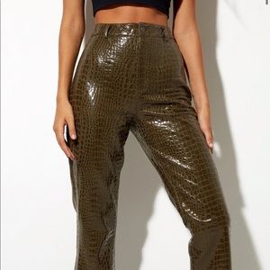 Motel Rocks Croc Pant, faux leather feeling. super soft and wearable unlike other leather pants. selling xs because i bought a S as well and the small fit better. the xs is true to size.