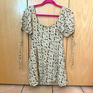 Yellow and purple floral mini dress, size small. Never worn, like new condition. Feel free to make an offer!