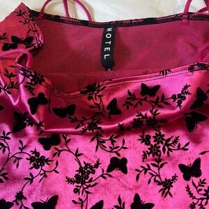 Motel rocks hot pink butterfly dress in size Small. Form fitting and extremely flattering, satin material with adjustable straps that can be worn in different styles. Statement piece , Only worn once or twice.