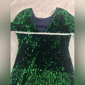 Shimmer in this emerald sequin dress. Ideal for parties. Long sleeves for a chic look.