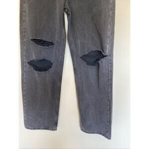 Motel Rocks Faded Black Distressed Wide Roomy 5-Pocket Denim Jeans Womens Large