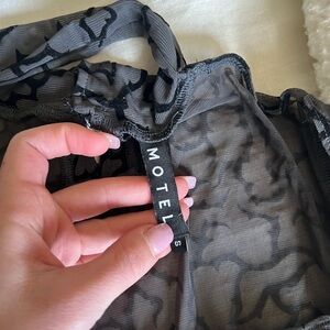 Chic gray sheer top with abstract pattern. Ideal for layering.