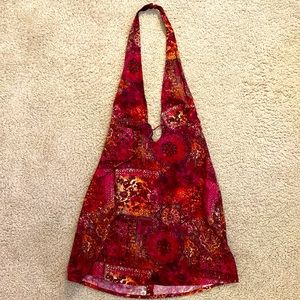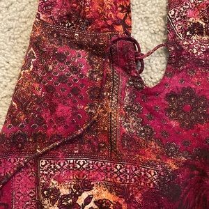 Tight mini dress, worn once, a mix of burgundy, orange and red colors/tones.