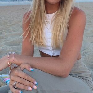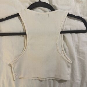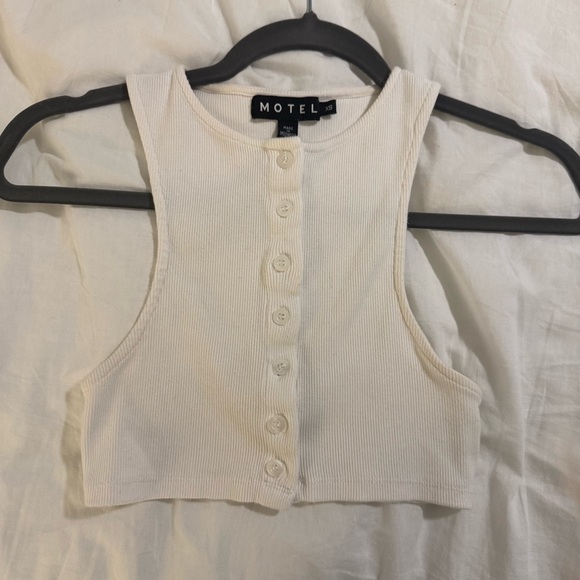 Stylish cream crop top with button-up front. Sleeveless design by Motel.