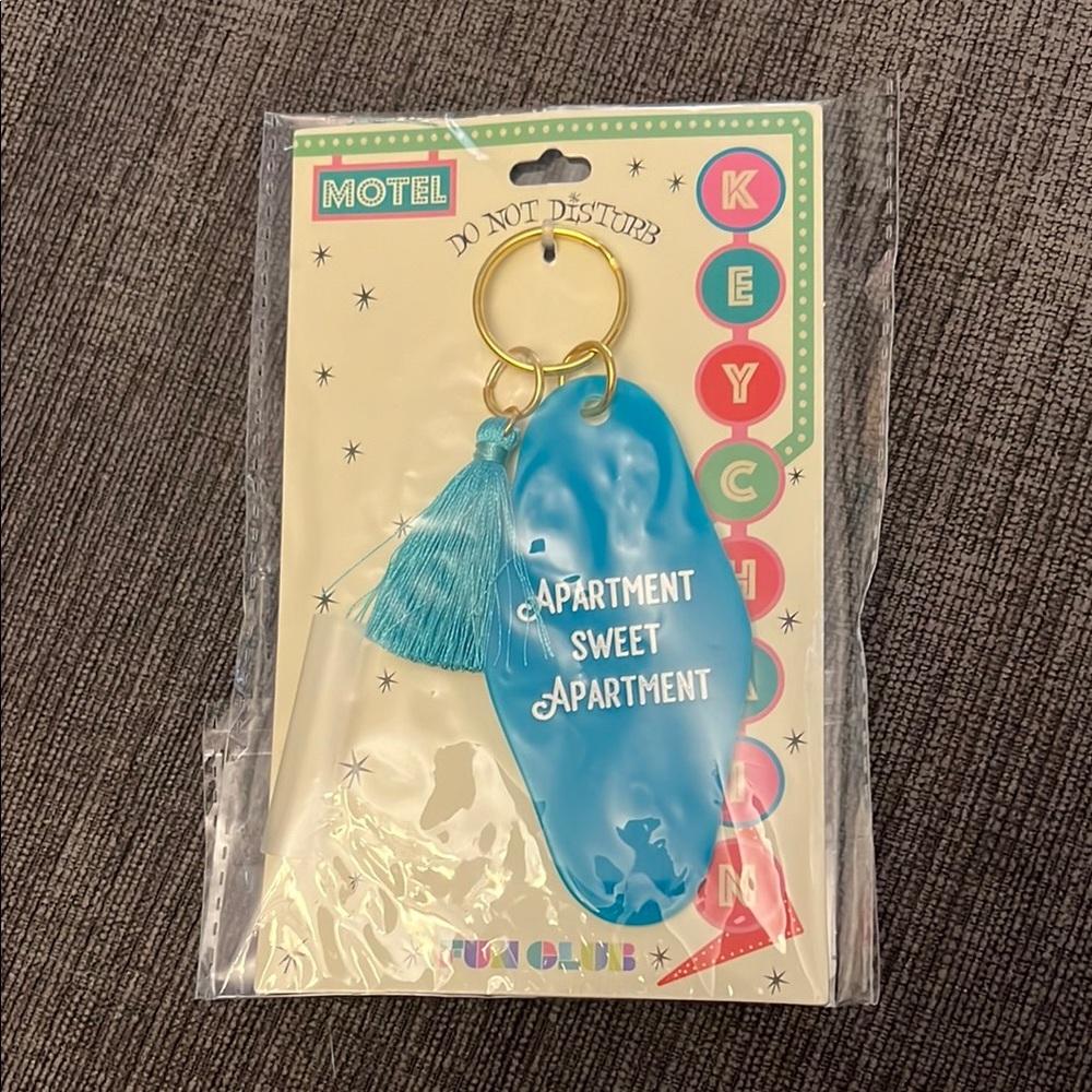 Charming Motel Rocks keychain in a vibrant blue color. Perfect for adding a playful touch to your keys.