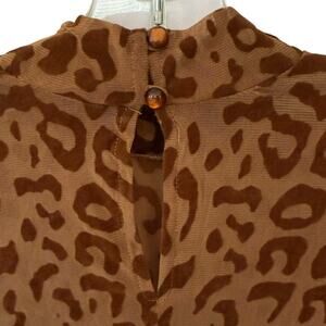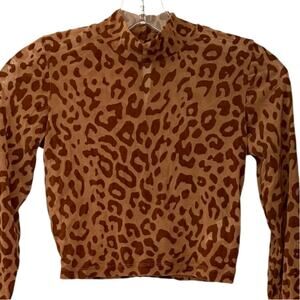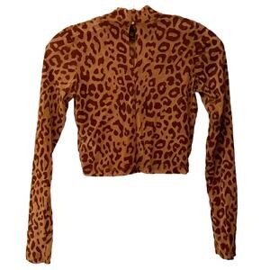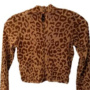 Motel Rocks Leopard Print Mesh Crop Top Long Sleeve Going Out Brown Tan Size XS