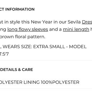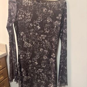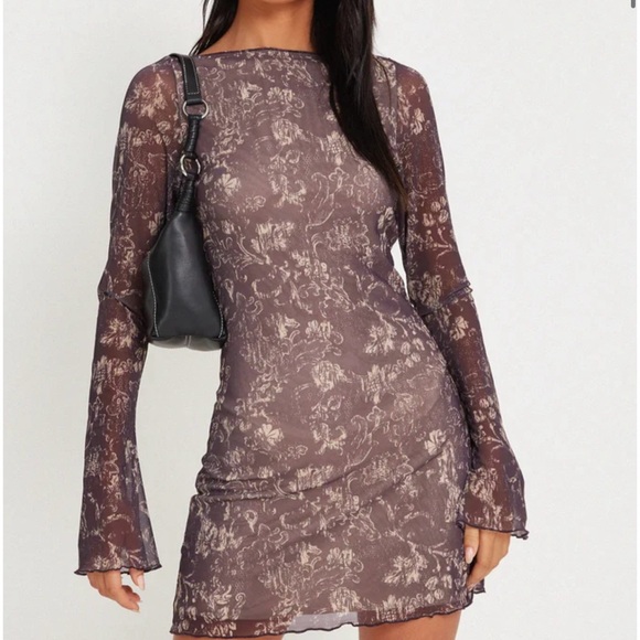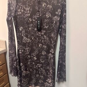 NWT Motel Rocks Sevila Dress in Botanical Brown. Flirty with long flowy sleeves and a mini length.