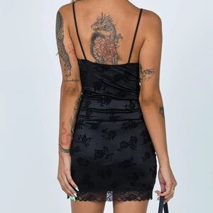 Excellent condition, worn once! Super cute fitted mini dress with lace trim and floral detail! Bought from Princess Polly but brand is Motel! 23.5 inch from top seam to bottom seam