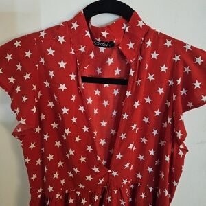 Motel Rocks Red Mini Dress w/White Stars Ruffle Sleeves size Small
