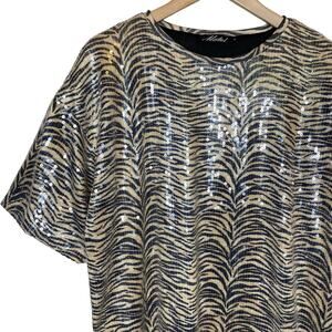 Motel Rocks Sequin T-Shirt Animal Tiger Zebra size Small