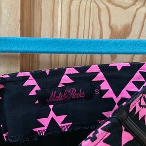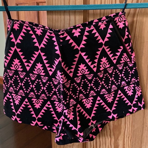 Bright pink and black patterned hot pants. High waisted. Structured material. Purchased from Urban Outfitters. Can fit size 0/2! Worn ONCE.