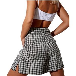 Featuring a high waisted fit with button fastening in an all over check print. Team these shorts with an oversized blazer and docs for a look we are loving!
