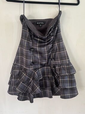 Motel Rocks Strapless Gray Plaid Ruffle Mini Dress
