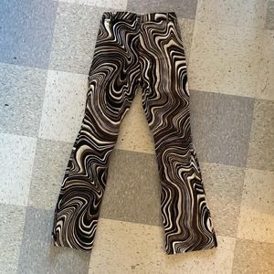 Motel Rocks 70s style flare swirl pants in brown. Fits size small (waist 26 with some stretch). Worn 5 times