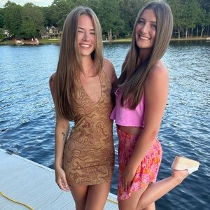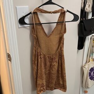 Chic tan top with intricate patterns. Ideal for casual wear.