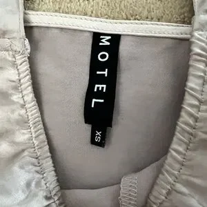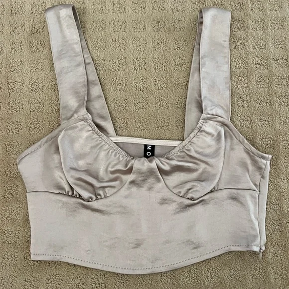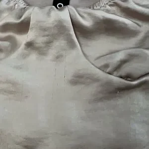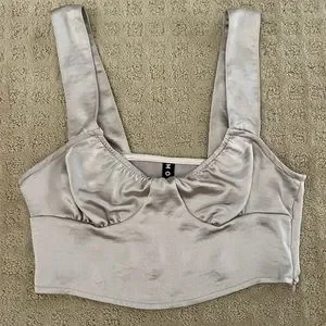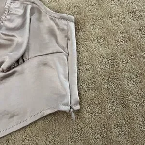 Satin champagne cropped top with zipper closure. Has a few scratches as shown in the photos but not noticeable.