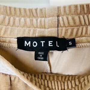 Motel Rocks Velour Set Small Crop Hoodie & Wide Leg Pants Tan Brown Tracksuit