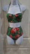 This Motel Rocks bikini set blooms in vintage tropical florals—green, red, pink & blue—w/ a push-up halter top & high-waisted bottoms for flattering coverage.