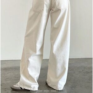 NEVER WORN Stylish off-white jeans with a wide leg design. Ideal for casual outings.