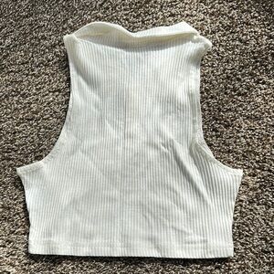 Elevate your style with the Motel Rocks White Ribbed Crop Top. Perfect for any occasion, this top offers a chic and comfortable fit.