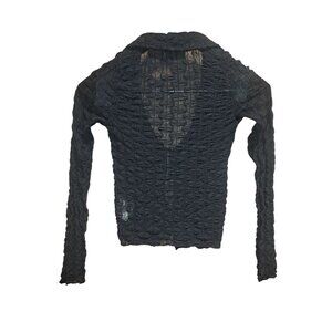 Title: Motel Rocks Sheer Crinkle Mesh Tie Front Crop Top Black Long Sleeve Women’s Small