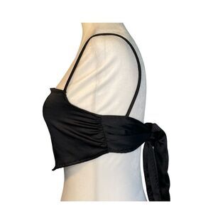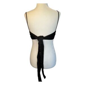 Motel Rocks Zashe Satin Tie Back Halter Top Black Spaghetti Straps Cropped S