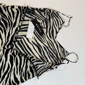 Brand new with tags (NWT) Motel Rocks zebra print mini dress, size Small. Features adjustable spaghetti straps, soft lightweight fabric, and a side slit for a flattering fit. Trendy and perfect for parties, concerts, or a bold night-out look. Style with boots or heels for that effortless Y2K vibe.