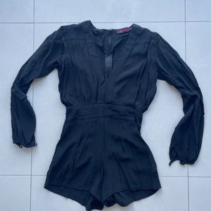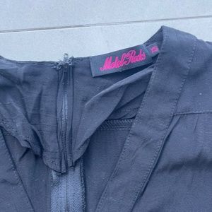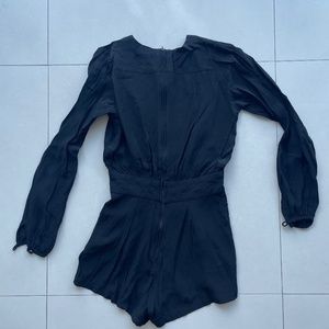 Super cute and flattering romper from Motel Rocks. It's the best going out outfit! It has a zipper in the back and pretty deep v neck. The fabric is very light and it has a bit shine to it.